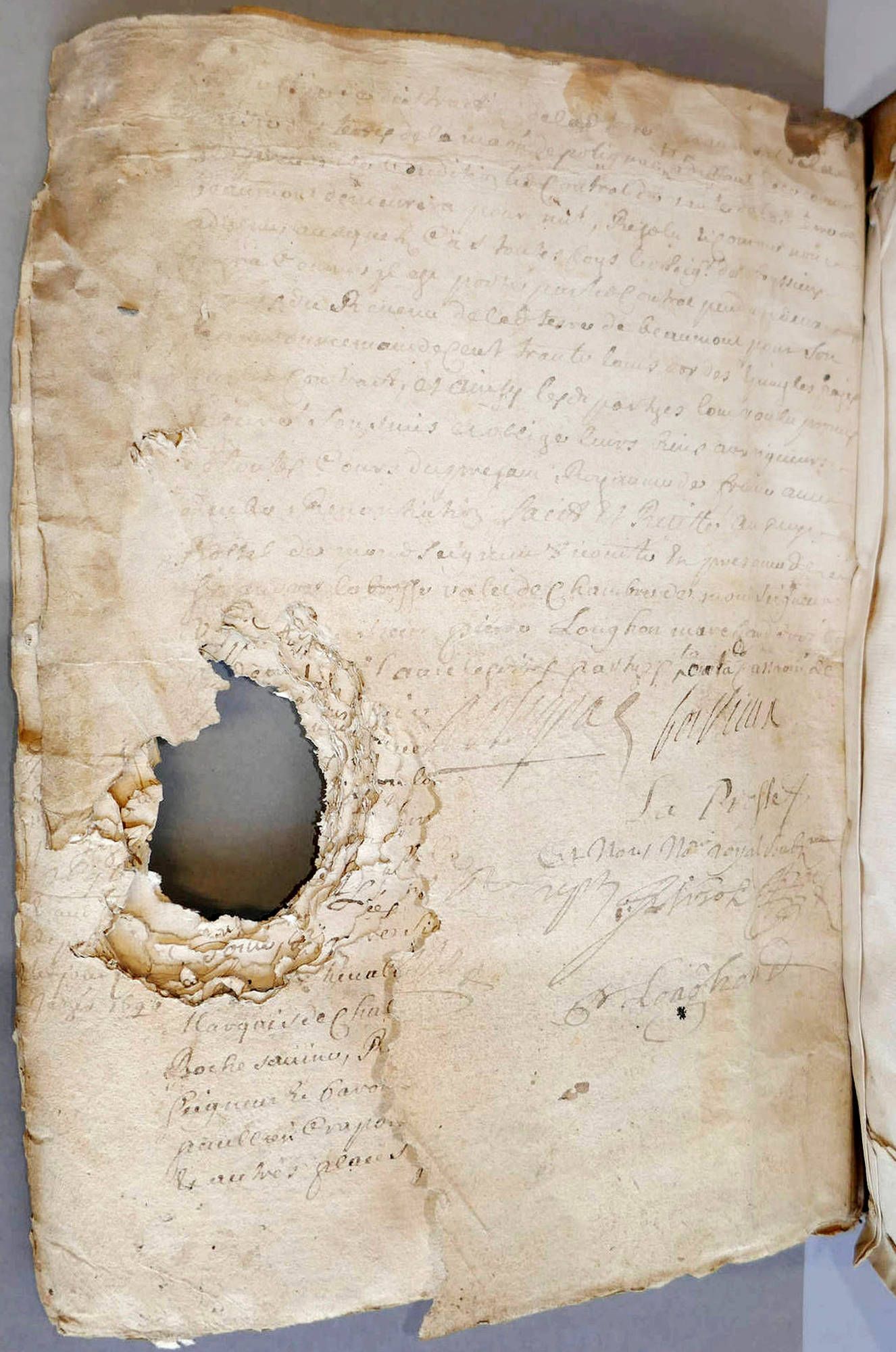 Des actes notariés du XVIIe siècle grignotés