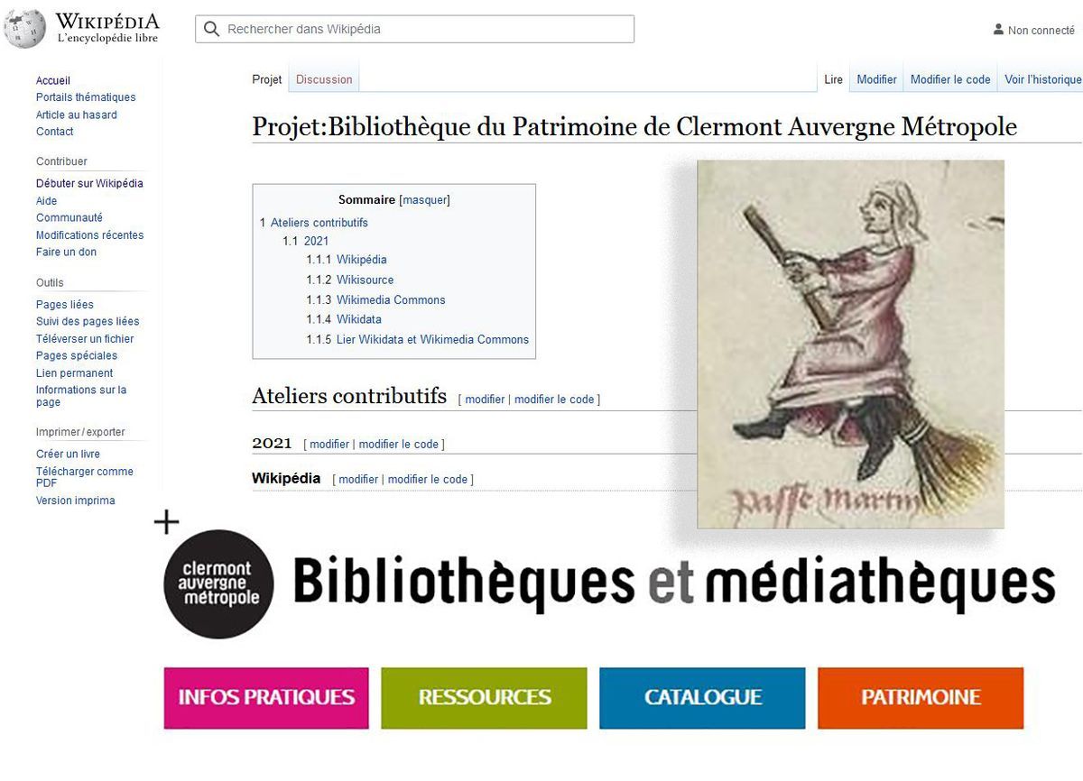- La Bibliothèque du patrimoine de Clermont Auvergne Métropole propose ce jeudi 24 juin de 17h00 à 19h00, un atelier wiki en ligne sur les sorcières en Auvergne. Vous pouvez si vous le souhaitez, participer à l’enrichissement de l’article Wikipedia en direct et contribuer au recensement des "sorcières" d’Auvergne sur Wikidata.