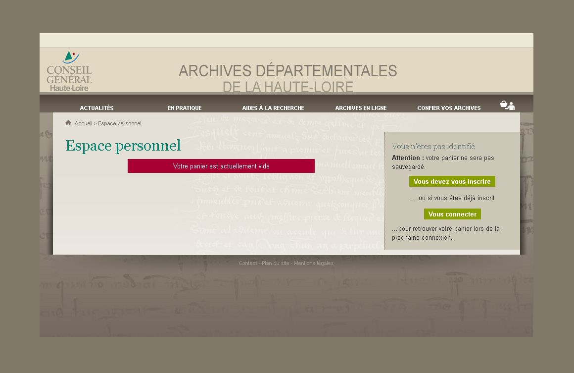Espace personnel à disposition sur le site internet des Archives départementales de la Haute-Loire