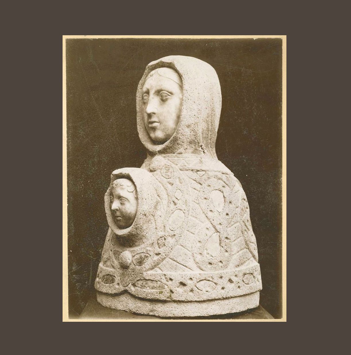 - Tirée du carton 20 ou 21, de la sous-série 4 T correspondant aux papiers de la préfecture relatifs au secrétariat d'État aux Beaux-Arts, cette photographie représente une vierge à l'enfant. Le cliché était isolé sans référence précise dans le dossier de la préfecture.