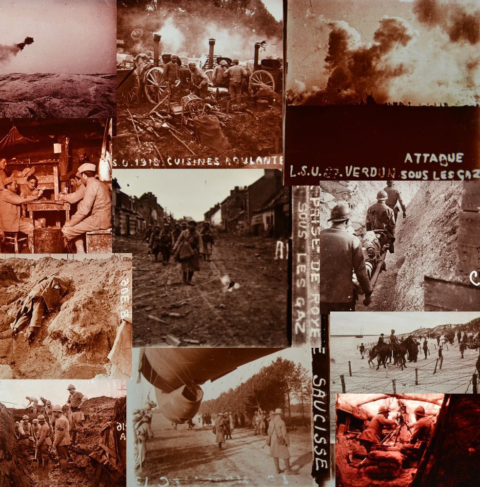 - Conservées précieusement tel un trésor familial par ses descendants, les plaques de verre sont en très bon état et offrent des images de qualité. Toutes légendées mais pas forcément datées, les plaques ont été classées par lieux géographiques. Les scènes illustrent la vie quotidienne des Poilus au front tout au long du conflit et sur les principaux champs de bataille de la Grande guerre (Marne, Champagne, Verdun, Somme, etc.). Les plaques dévoilent notamment les « corvées de boue » qui façonnent les tranchées, les rassemblements autour de la « popote » préparée à l'aide des cuisines roulantes, les soins urgents prodigués aux blessés, les messes en plein air mais également les paysages dévastés, les soldats morts au combat.