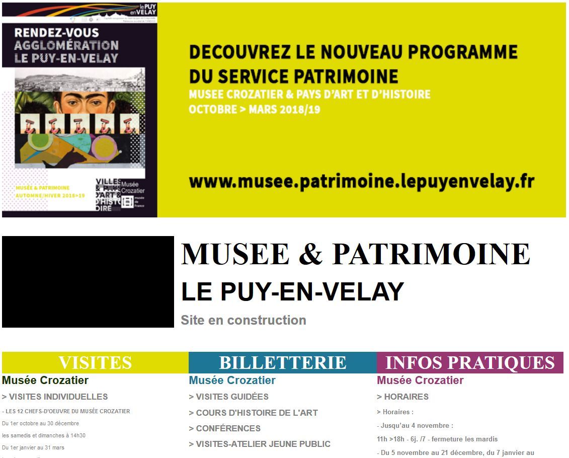 - Le Musée Crozatier du Puy-en-Velay qui a rouvert ses portes au public cet été, propose de nombreuses visites et animations thématiques pour tous les âges et en particulier des cours d'histoire de l'art. Le Service Patrimoine du musée vous invite à découvrir, d’octobre à décembre, un premier cycle d’histoire de l’art, clin d’œil à l’actualité, intitulé « La Paix, enfin ! ».