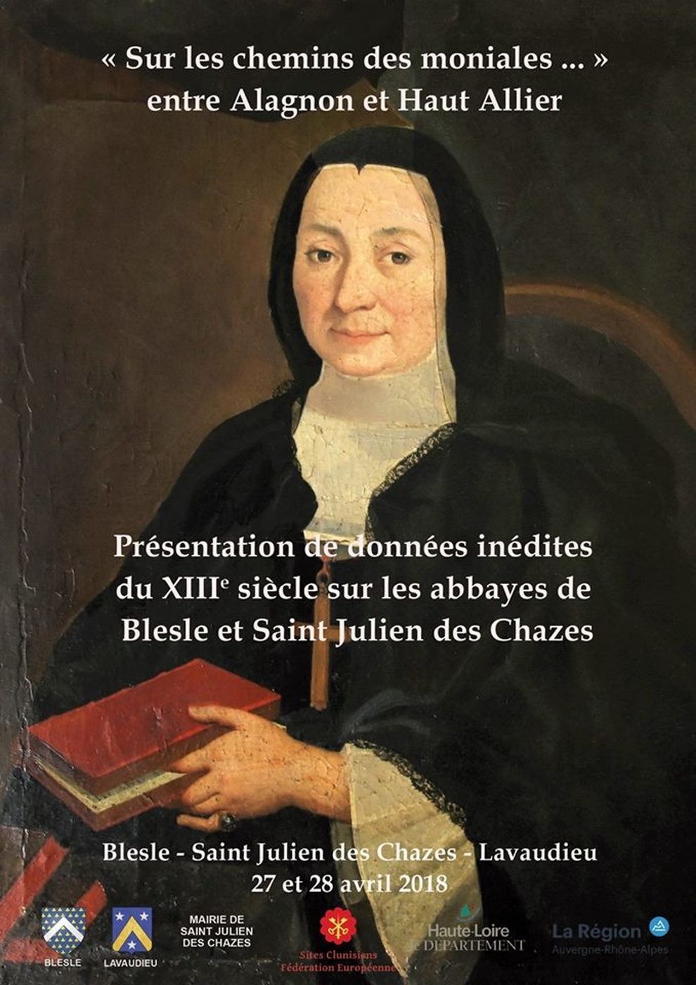 - Les 27 et 28 avril lors des journées consacrées au monachisme féminin intitulées "Sur les chemins des moniales, entre Alagnon et Haut-Allier", des manuscrits inédits du XIIIe siècle relatifs aux abbayes de Blesle et Saint-Julien-des-Chazes seront présentés au public dans les deux sites de Blesle et Saint-Julien-des-Chazes par Jean-Paul Bernard et Madeleine Le Marrec, respectivement membres de la Fédération européenne des sites clunisiens pour le site de Blesle et celui de Lavoûte-Chilhac.