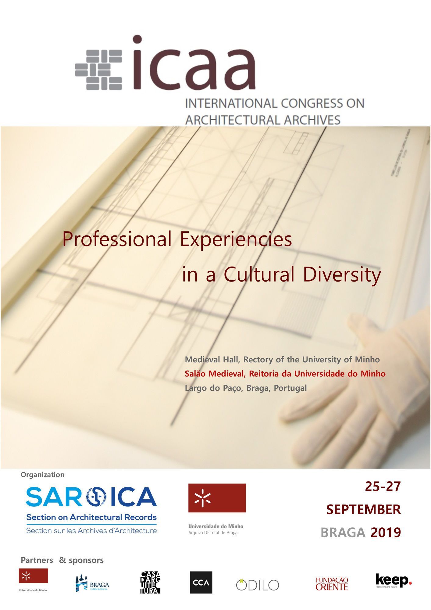 - La Section des Archives d’Architecture du Conseil international des Archives (ICA) et l'Archive Distrital de Braga de l'Université de Minho (UM-ADB) organisent un congrès international intitulé "Expériences professionnelles dans la diversité culturelle" à Braga (Portugal), du 25 au 27 septembre 2019.