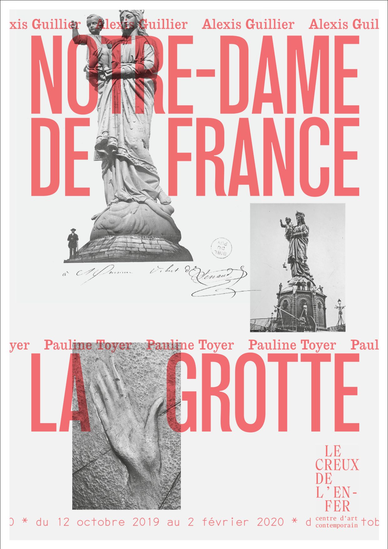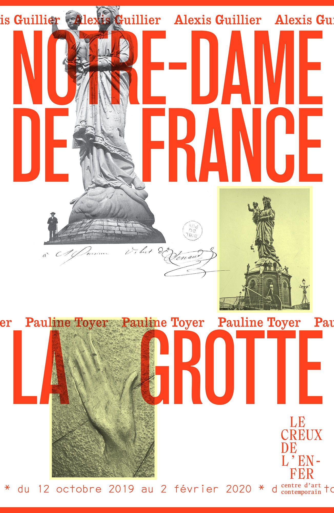 - Après avoir restitué ses travaux de recherche en novembre 2018 à l'École Supérieure d'Art de Clermont Métropole (voir notre actualité du 27 novembre 2018), Alexis Guillier expose cette fois-ci ses créations dédiées à la statue Notre-Dame de France du Puy-en-Velay, au centre d’art contemporain Le Creux de l’enfer à Thiers du 12 octobre 2019 au 2 février 2020.