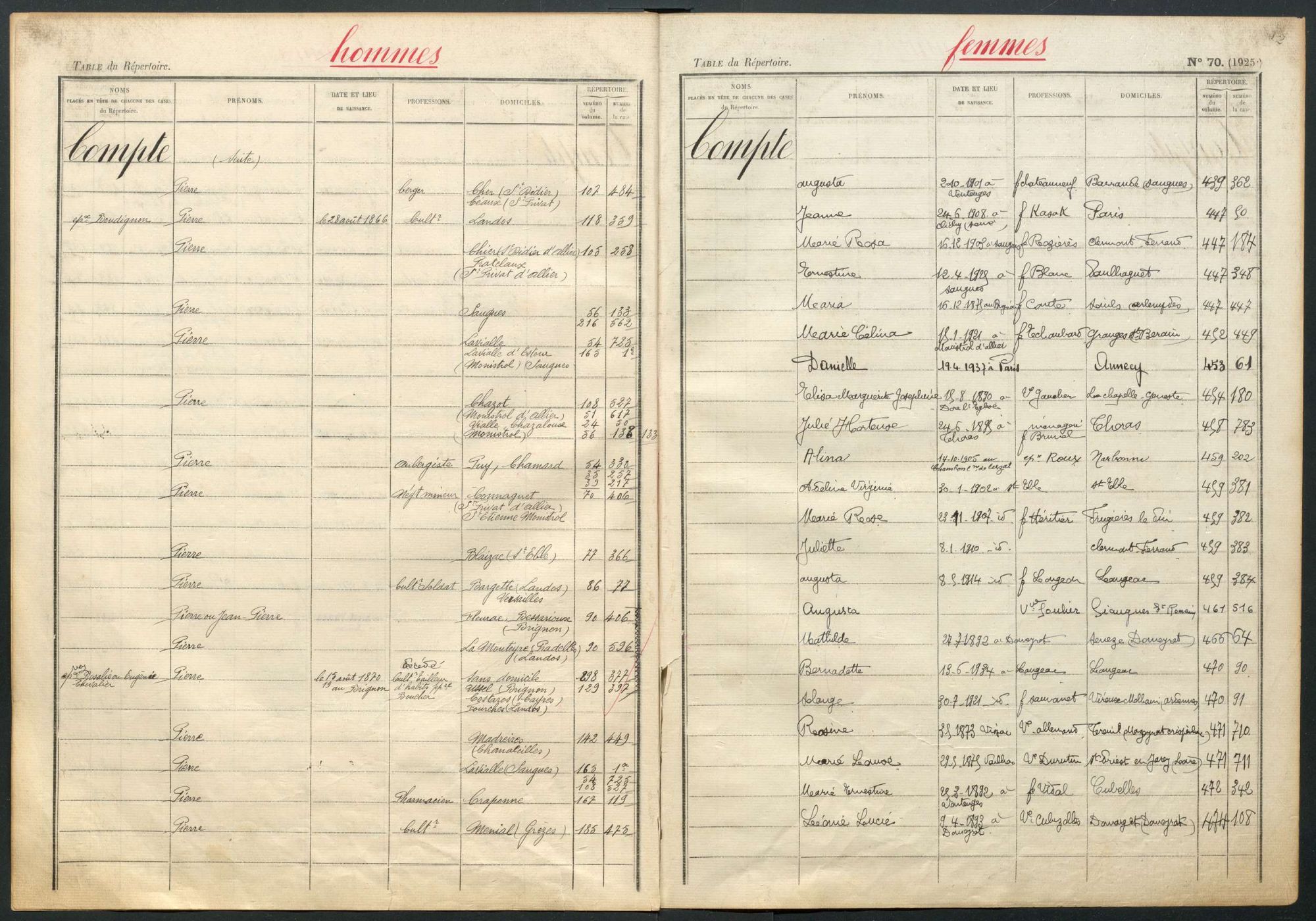 - Les tables alphabétiques du service de la Conservation des hypothèques (sous-série 4 Q) sont désormais consultables sur notre site. La collection issue des trois bureaux de la Conservation de Haute-Loire que sont Brioude, Le Puy-en-Velay et Yssingeaux, compte 251 tables pour un volume d’environ 10 mètres linéaires. Ce sont plus de 80.000 pages, utiles également pour les recherches en matière de généalogie, qui sont ainsi disponibles en ligne.