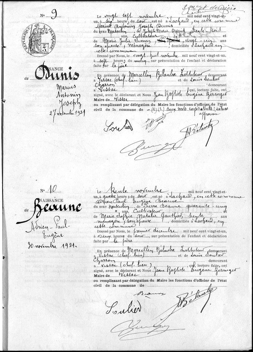 - Les actes des naissances de l'année 1921, issus de registres ayant pu être séquencés (1), sont à présent consultables sur notre site. Comme chaque année, nous mettons à votre disposition les actes de naissances ayant 100 ans révolus, conformément aux recommandations de la Commission Nationale de l'Informatique et des Libertés. Plus de 4100 nouvelles pages d'actes touchant 265 communes (sur 306 communes et anciennes communes), peuvent ainsi être consultées de chez vous, afin de compléter vos recherches généalogiques portant sur le XXe siècle. Ces pages sont issues du versement effectué par le Tribunal de Grande instance du Puy-en-Velay en 2013, portant la cote 1925 W.