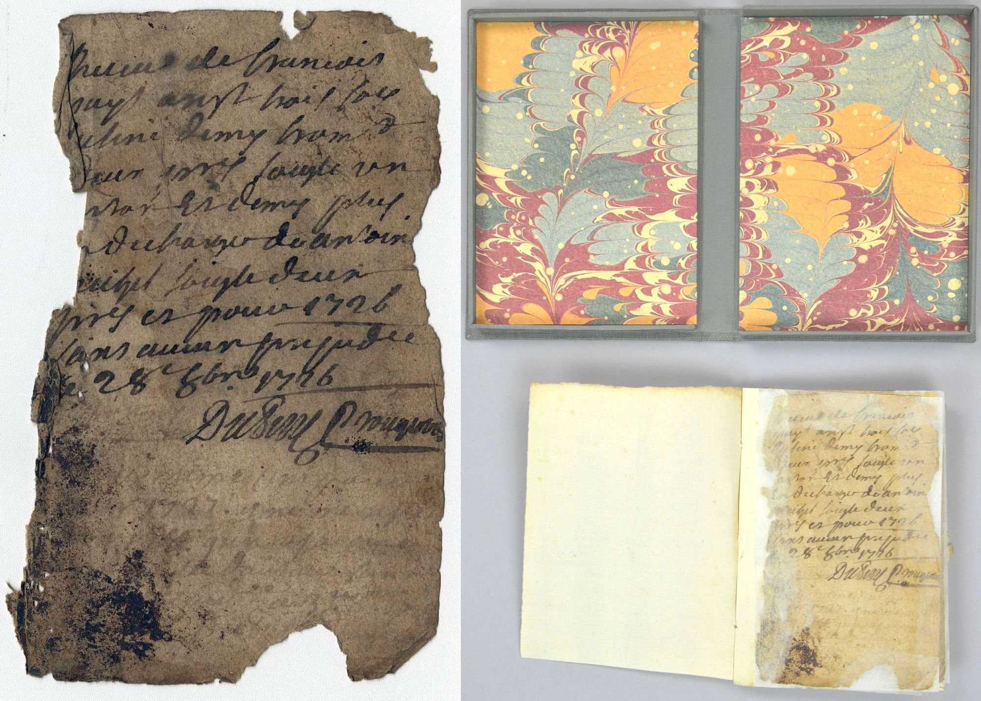 - Composé de feuillets reliés, sans couverture et renseigné à l'encre, le carnet a été confié aux bons soins de Laurent pour être nettoyé, relié et numérisé. Intégré dans la série des archives privées (pièces isolées) et recoté 1 J 977, il est à présent précieusement conditionné dans une boîte spécialement créée pour protéger au mieux ce témoignage assez exceptionnel d'une vie de labeur d'un paysan altiligérien du XVIIIe siècle.
