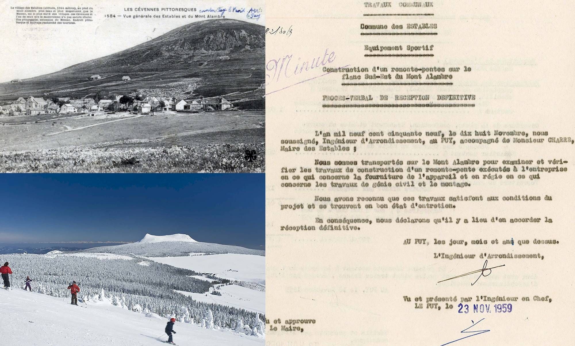 - Procès-verbal de réception définitive du premier remonte-pente des Estables, novembre 1959 (Arch. dép. Haute-Loire, 1687W5)