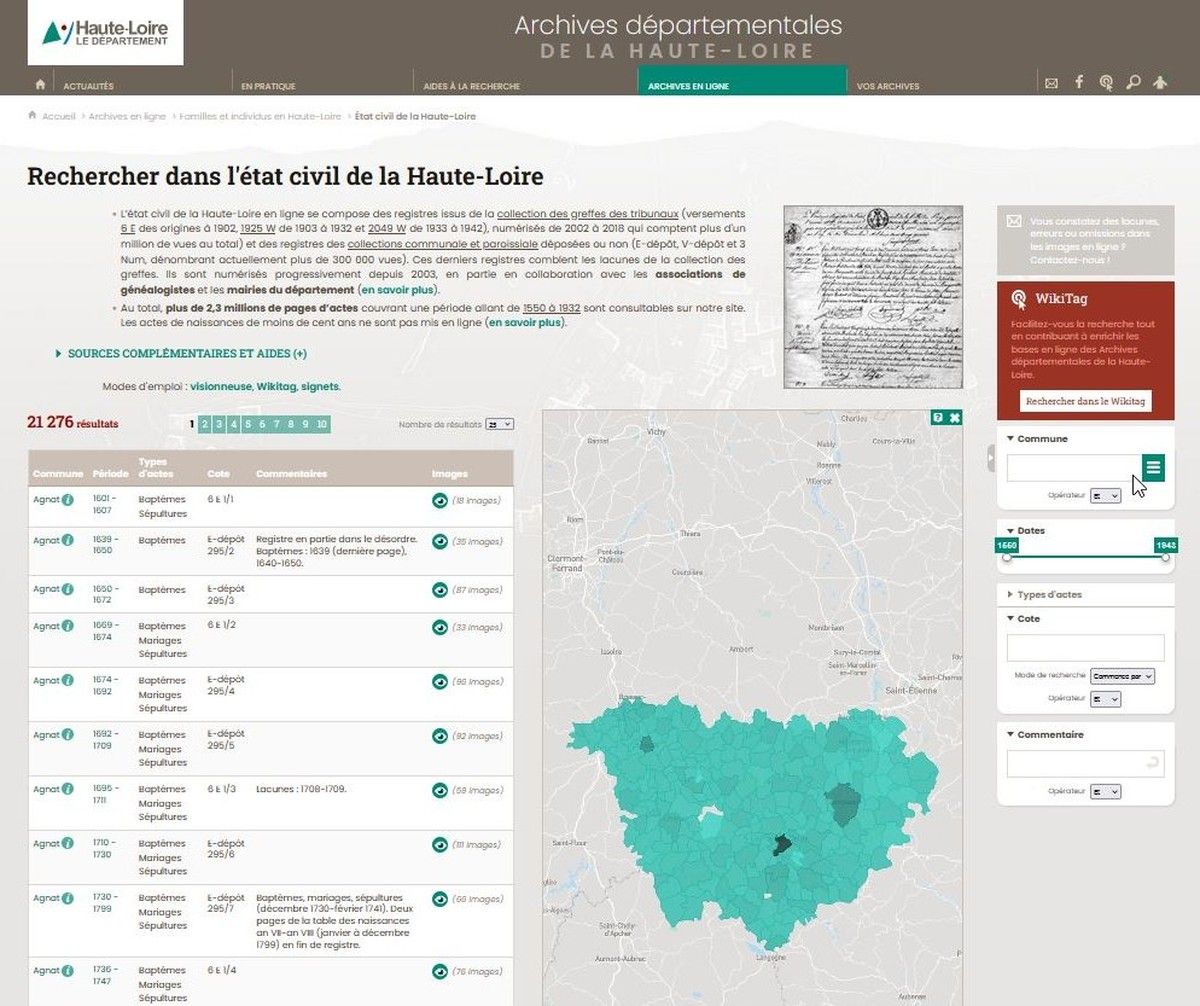 - Si vous constatez au cours de vos pérégrinations sur le site, des anomalies quelles qu'elles soient, n’hésitez-pas à nous le faire savoir en envoyant vos messages à contact webmaster. Depuis 2011, année d’ouverture du site internet des Archives départementales de la Haute-Loire, vos retours en tant qu'utilisateurs ont toujours été d’une grande aide pour effectuer des corrections et améliorations relatifs aux contenus et à leur présentation, nous comptons sur vous pour cette étape également.
