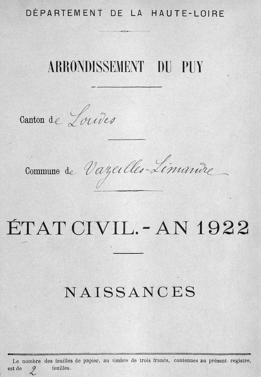 Actes de naissance de l'année 1922