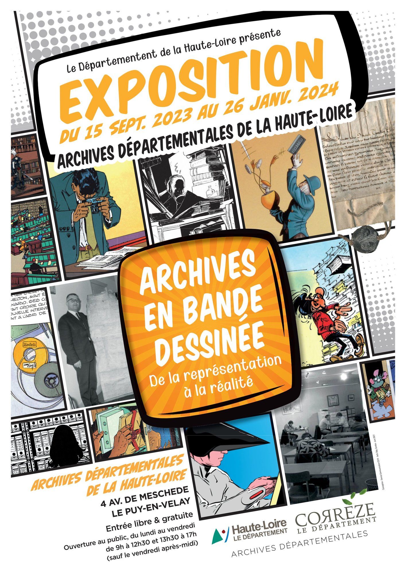 - Pour éclairer leur travail et poser un regard nouveau et volontairement décalé sur leur univers, les Archives départementales de la Haute-Loire accueillent du 15 septembre 2023 au 26 janvier 2024 l’exposition « Archives en bande dessinée : de la représentation à la réalité » conçue et réalisée par les Archives départementales de la Corrèze en 2021.