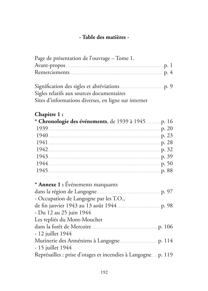 - Le premier tome de l'ouvrage Langogne et sa région, au temps de la Résistance (1939-1945), rédigé par Gérard Lutaud, vient de paraître aux Éditions Lacour-Ollé de Nîmes. L'auteur vous propose de découvrir la table des matières du tome 1 ainsi que le plan des 3 tomes, consultables ci-dessous.