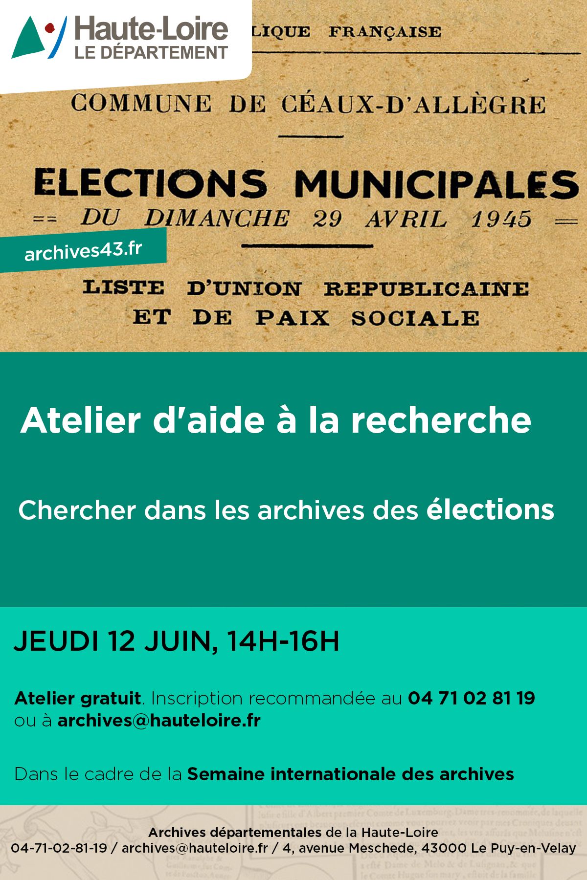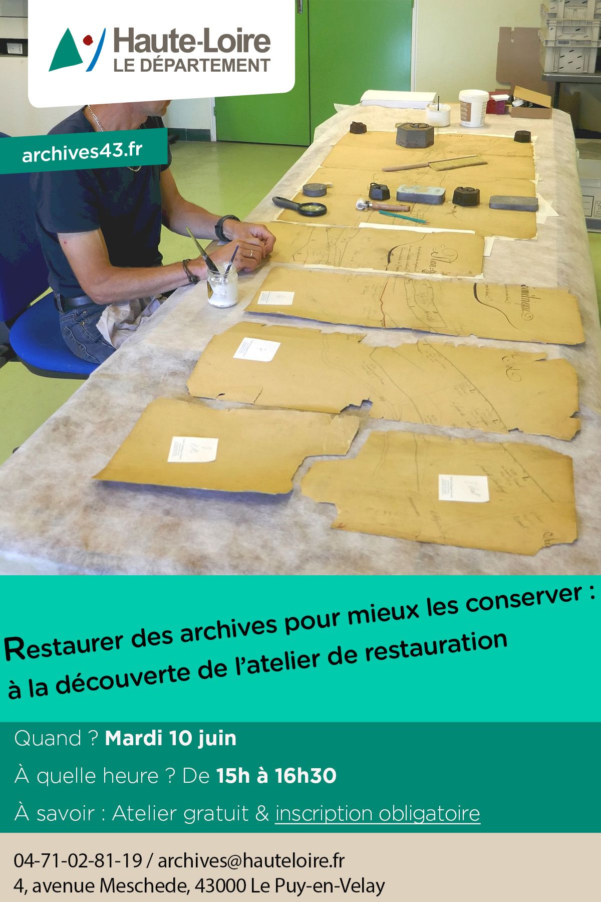 Accès gratuit & inscription recommandée à archives@hauteloire.fr ou au 04 71 02 81 19