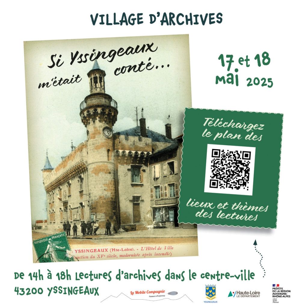 Une quinzaine de lectures d’archives, sur des sujets variés, seront proposées dans divers lieux du centre historique d’Yssingeaux. Chaque lecture, d’une dizaine de minutes, sera répétée autant que nécessaire, suivant le flux du public et ses déambulations.