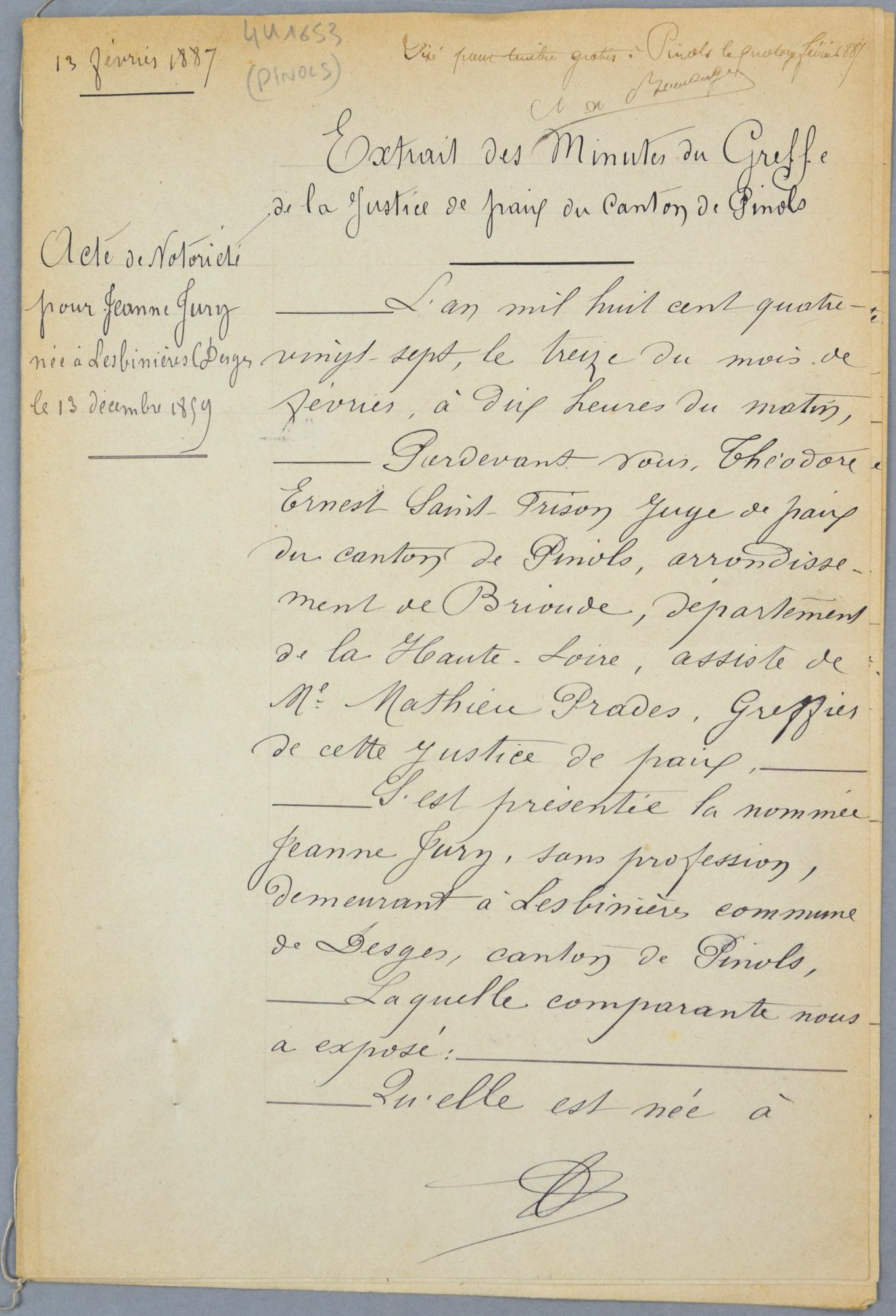 Vous rechercherez cet acte dans les archives de la cour d’assises. Les jugements rendus postérieurement à 1929 sont encore conservés par le tribunal de grande instance du Puy-en-Velay.
