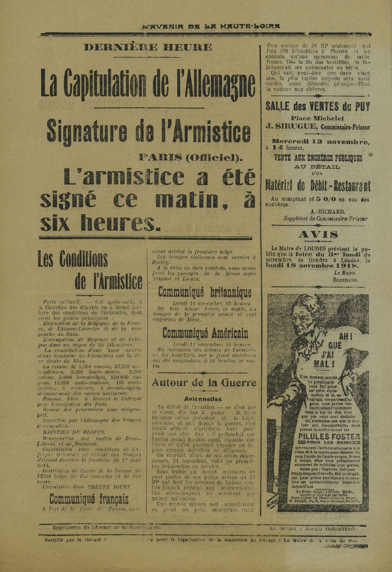 Cette page est extraite du journal l’Avenir de la Haute-Loire (2 PB 3), hebdomadaire publié tout au long de la Grande Guerre, dont les années 1914 à 1919 sont consultables sur notre site, rubrique "Presse ancienne de la Haute-Loire". Les encarts de la colonne de droite mettent sur la piste du département de la Haute-Loire, et la mention de l’imprimerie en bas à gauche indique le titre du journal.