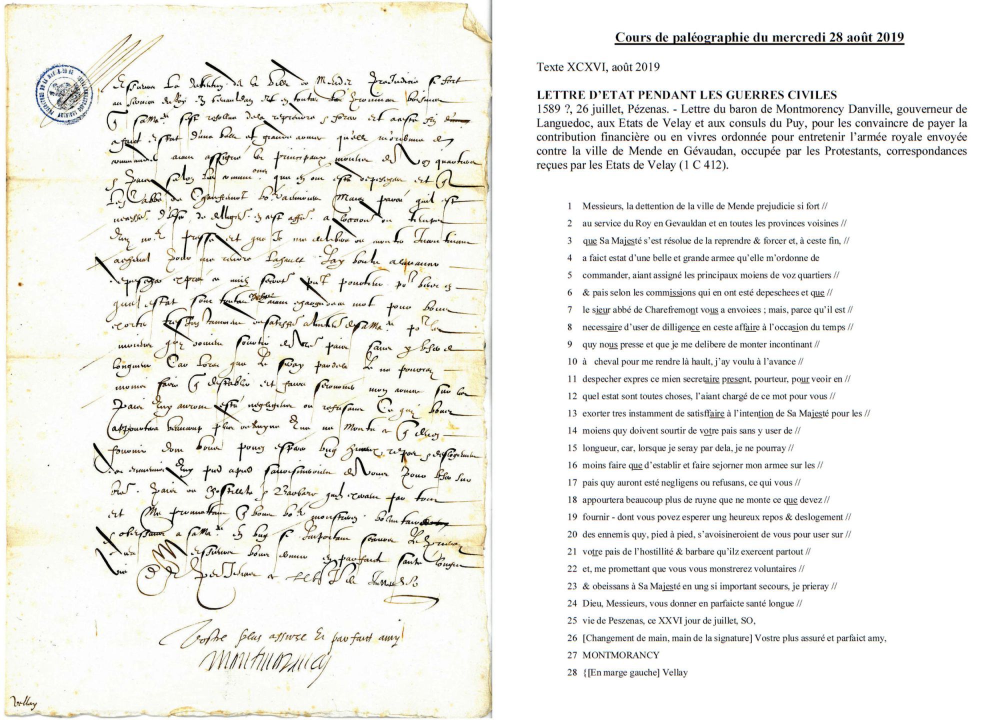 - Lors du cours de paléographie du mercredi 28 août 2019, un nouveau texte à déchiffrer vous est proposé.