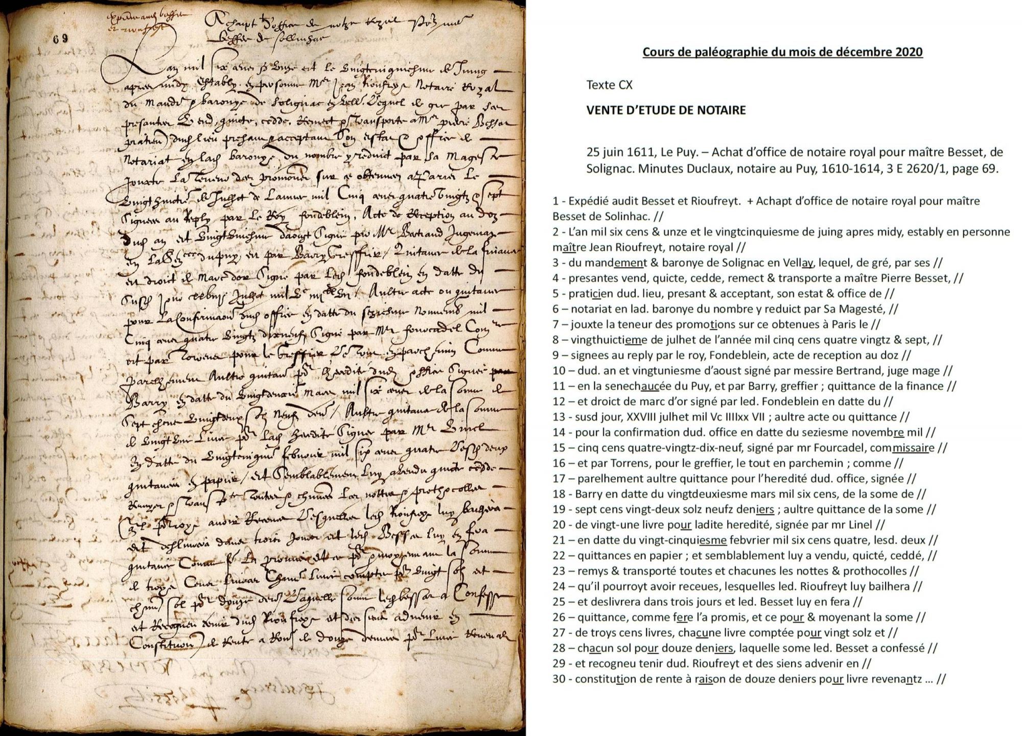 Cours de paléographie du mois de décembre 2020 et corrigé