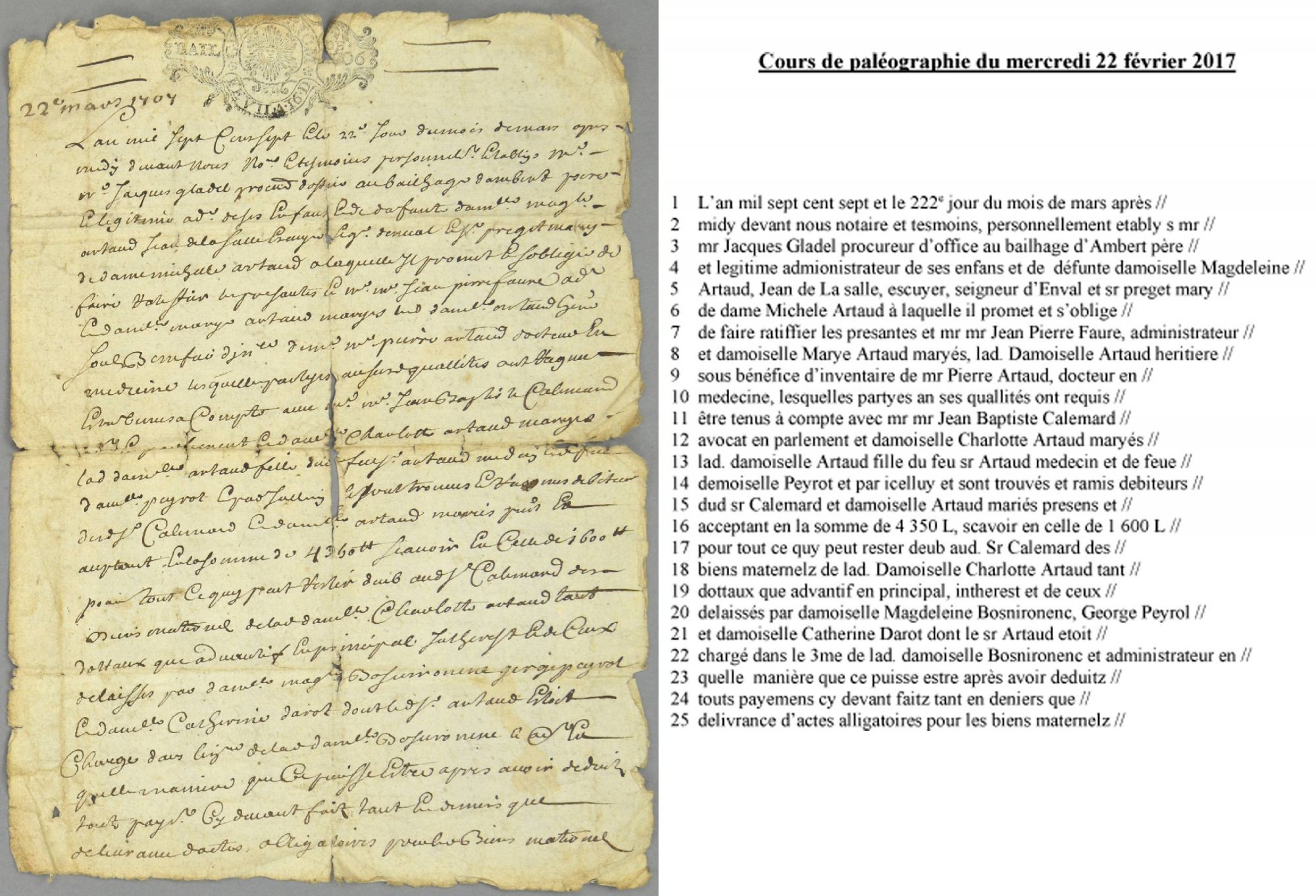 - Lors du cours de paléographie du mercredi 22 février 2017, un nouveau texte à déchiffrer vous est proposé.