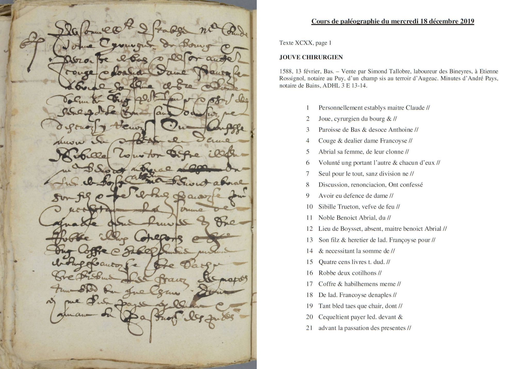 - Lors du cours de paléographie du mercredi 26 février 2020, un nouveau texte à déchiffrer vous est proposé.