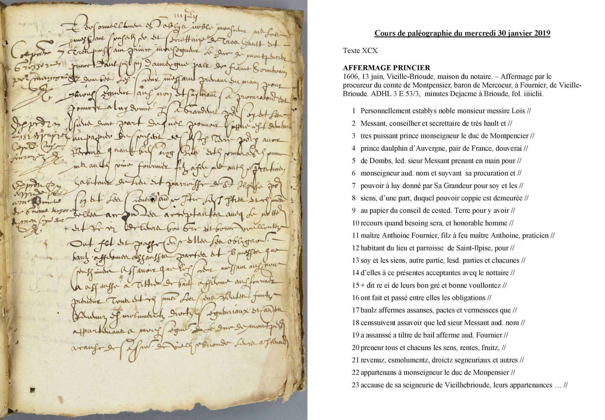- Lors du cours de paléographie du mercredi 30 janvier 2019, un nouveau texte à déchiffrer vous est proposé.
