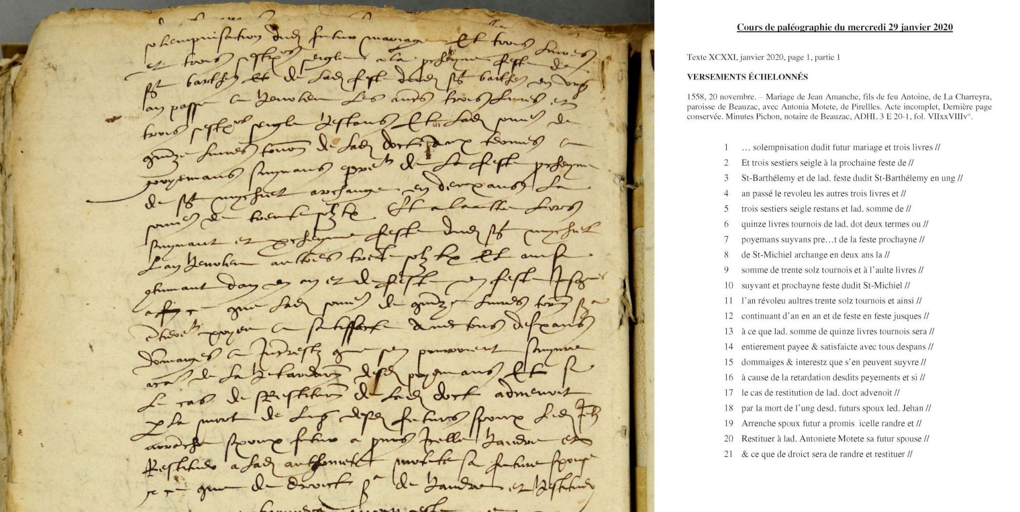 Cours de paléographie du mois de janvier 2020 et corrigé