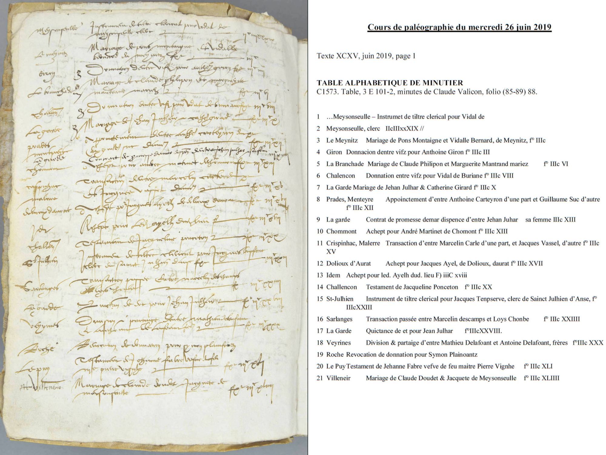 Cours de paléographie du mois de juin 2019 et corrigé
