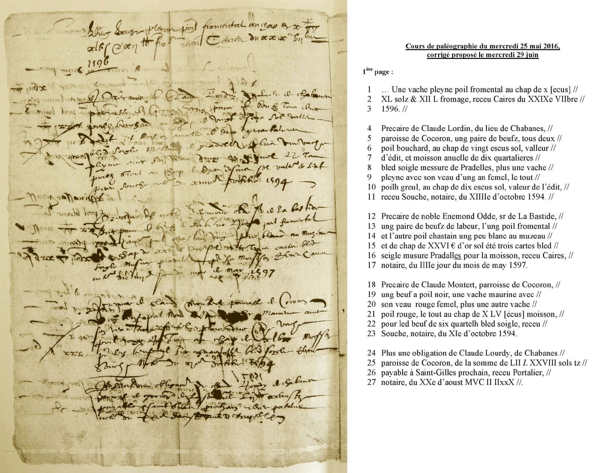 Cours de paléographie du mois de mai 2016 et corrigé