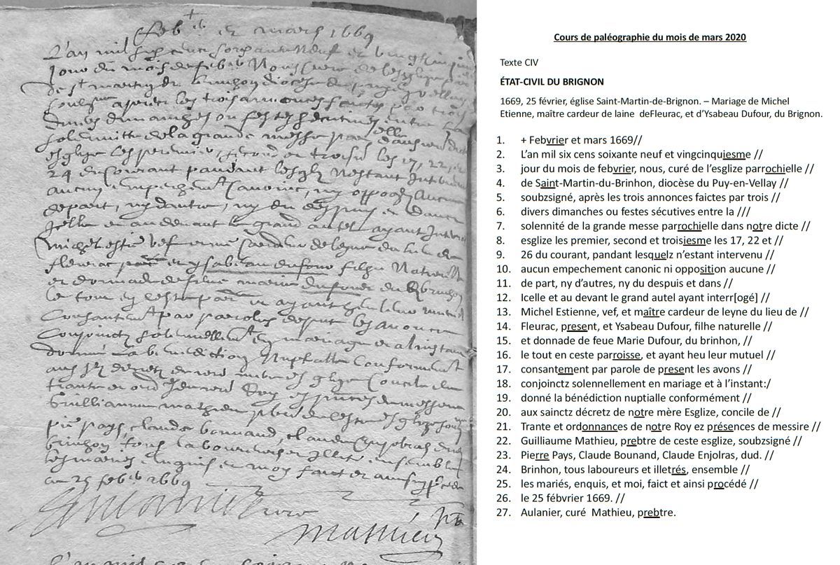 Cours de paléographie du mois de mars 2020 et corrigé
