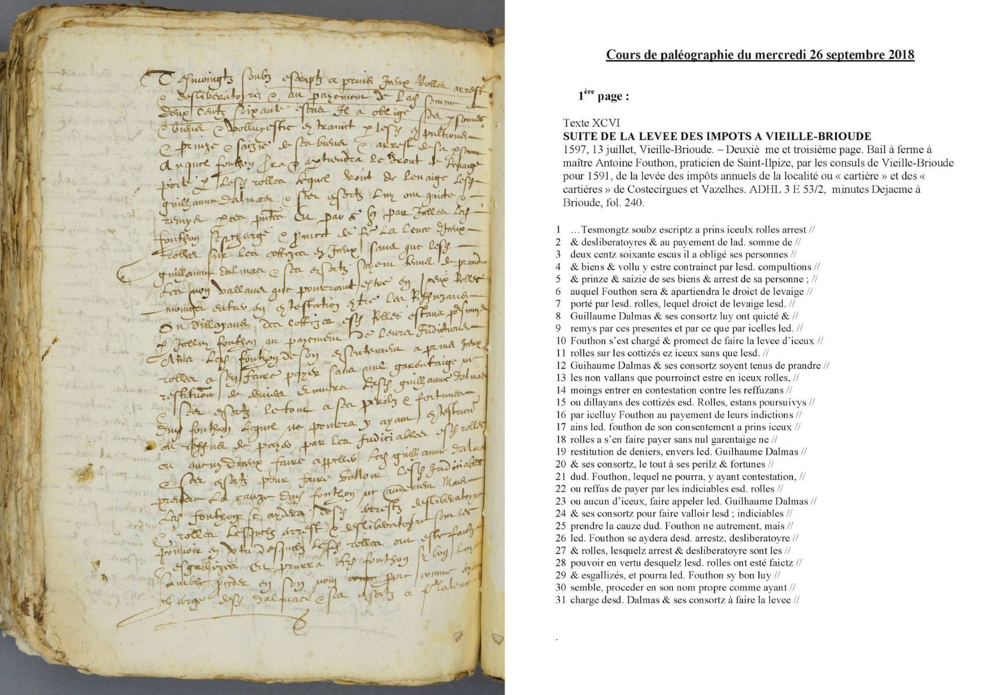 - Lors du cours de paléographie du mercredi 26 septembre 2018, un nouveau texte à déchiffrer vous est proposé.