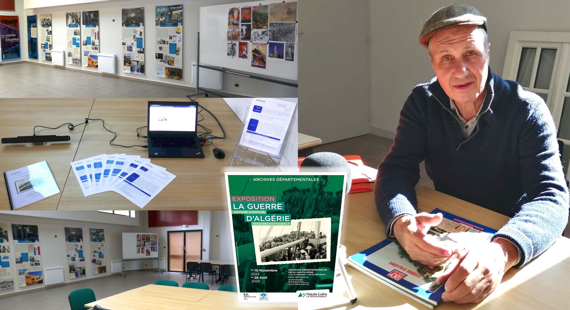 - Dans la continuité de son travail de collecte de témoignages sur la guerre d’Algérie, mené en 2021 et 2022, en collaboration avec le Service départemental de l'ONACVG de Haute-Loire et les Archives départementales de la Haute-Loire, Yves Becouze, a souhaité faire découvrir l’exposition « La guerre d’Algérie. Histoire commune, mémoires partagées ? » présentée jusqu’en avril 2023 aux Archives départementales, à différentes personnes rencontrées lors des collectes de témoignages oraux.